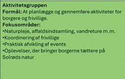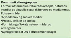 Der er masser af muligheder for at deltage i en arbejdsgruppe og gøre en forskel. Du kan selvfølgelig også tage initiativ til en ny aktivitet. Selv få mennesker kan gøre en vigtig forskel til gavn for vores fælles natur. Nedenfor finder du eksempler på forskellige initiativer.